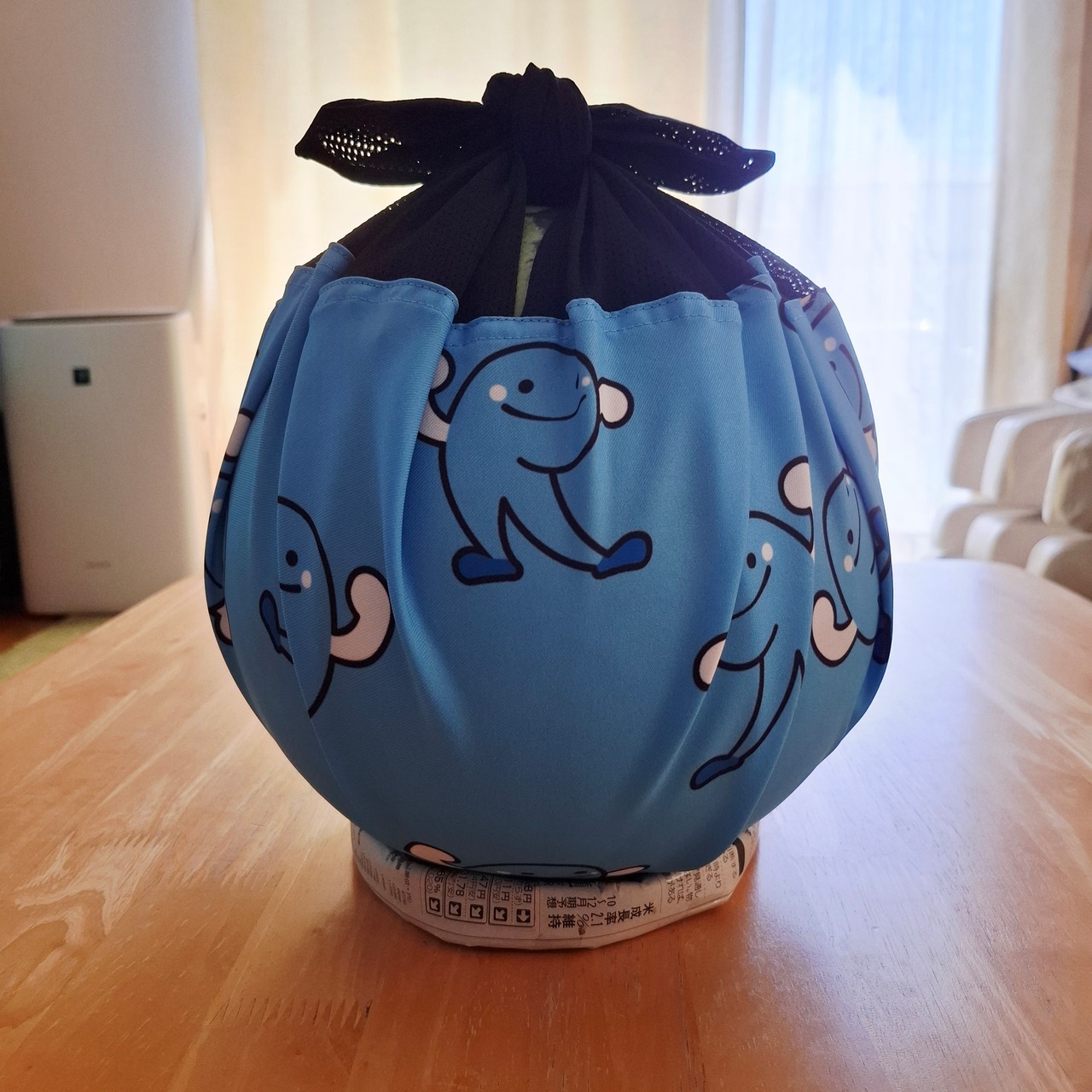 高知県のイメージキャラクターである「くろしおくん」をプリントした約58×58㎝のまるい形のバッグです。